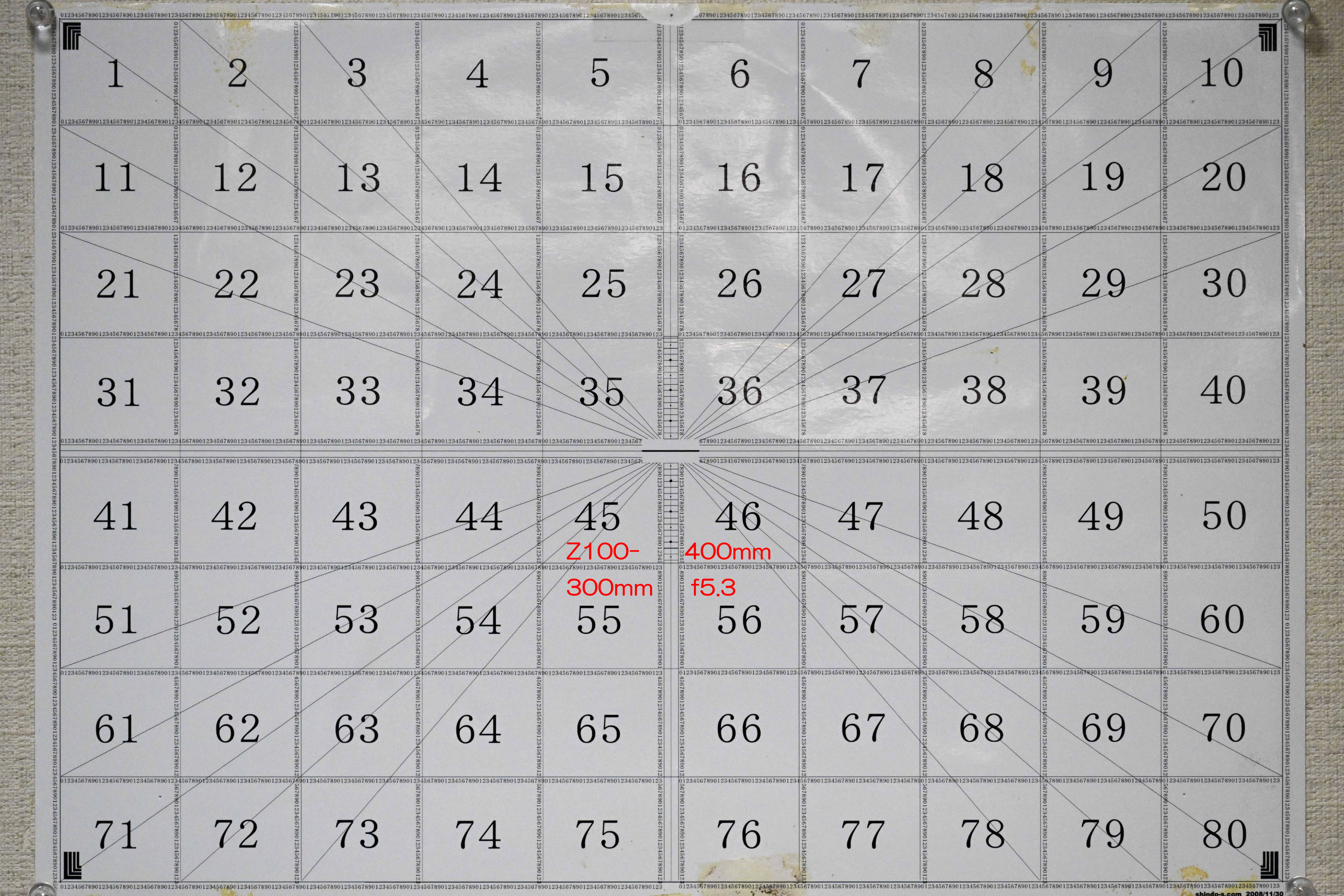 100mm, 200mm, 300mm, 400mm の各ズームごとに